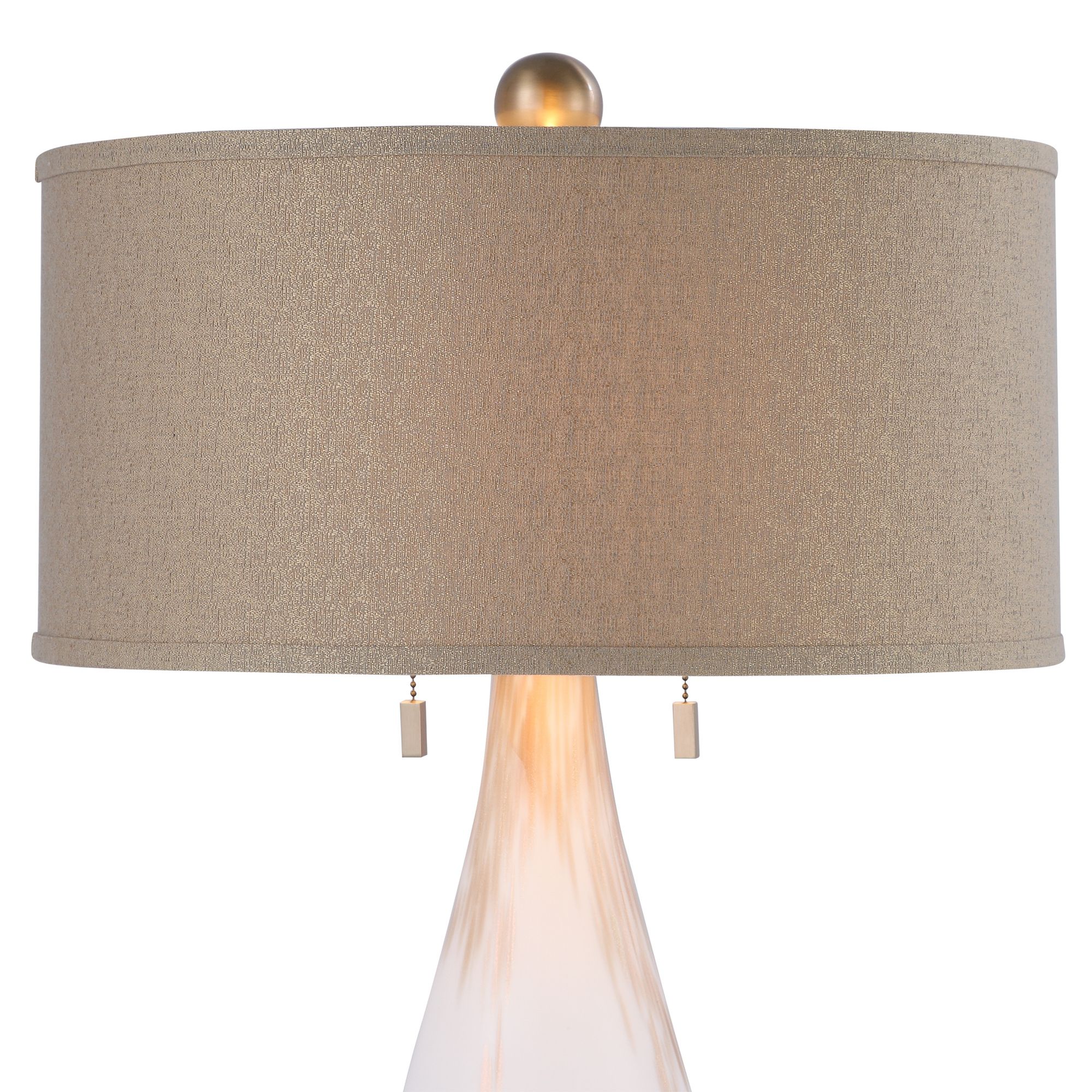 The round hardback drum shade is a taupe bronze linen fabric. Uttermost cardoni white glass table lamp. Add contemporary style to your space with the uttermost cardoni glass table lamp, shown here in white. Shop for uttermost table lamps at shop better homes & gardens. Elegant floor lamp showcases gloss white glass featuring metallic golden bronze hues that is accented by plated brushed brass metal details.